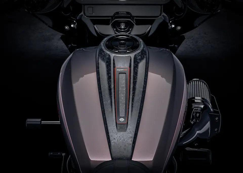 Ein neues Kapitel in der Geschichte der CVO: die 2026er CVO Street Glide ST. Brandneu im Jahr 2026, führt die CVO Street Glide ST den Batwing-Bagger in bislang unbekannte Dimensionen. Der Heavy-Breather-Einlass unterstreicht dem Auftritt des Motorrads, während die schwimmend gelagerten Bremsscheiben, acht frei wählbare Fahrmodi (einschließlich Track und Track+) sowie die Hinterradfederung mit außenliegenden Ausgleichsbehältern Rennpräzision auf die Straße bringen. Details aus Forged Carbon und der Milwaukee-Eight™ 121 High Output Motor signalisieren die Kompromisslosigkeit eines Motorrads, das niemals in einem Atemzug mit dem Wort „aufgeben“ genannt werden wird.