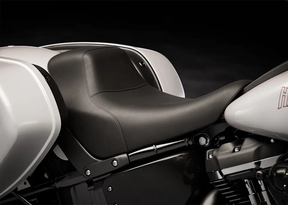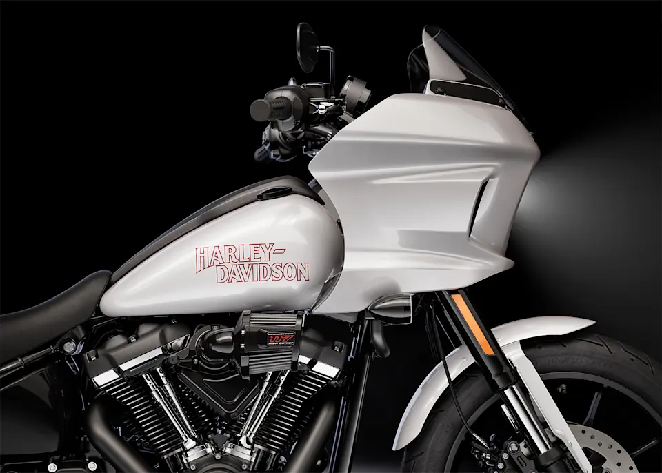 Inspiriert von Westküsten-Customizern, die ein Vorliebe für die klassische FXRT-Verkleidung haben, wurde die leichte rahmenfeste Verkleidung der Low Rider ST mit Hilfe von computergestützter Strömungssimulation entwickelt, um die Aerodynamik zu optimieren, die Ermüdung durch den Druck des Fahrtwindes zu reduzieren und für mehr Fahrkomfort zu sorgen.