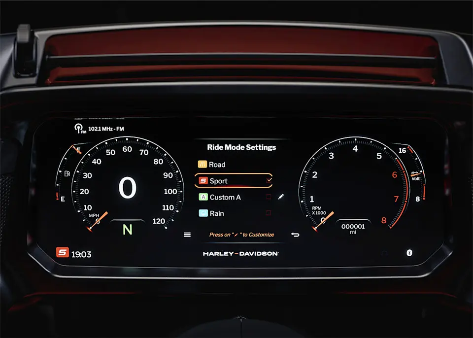 Dank des 312 mm großen TFT-Display mit Skyline OS sind Landkarten, Medien und Motorradeinstellungen leicht verfügbar. Die handschuhfreundliche Oberfläche und das in die Verkleidung integrierte H-D Audio-System liefern einen klaren, präzisen Sound, der auch Wind- und Straßengeräuschen übertönt.